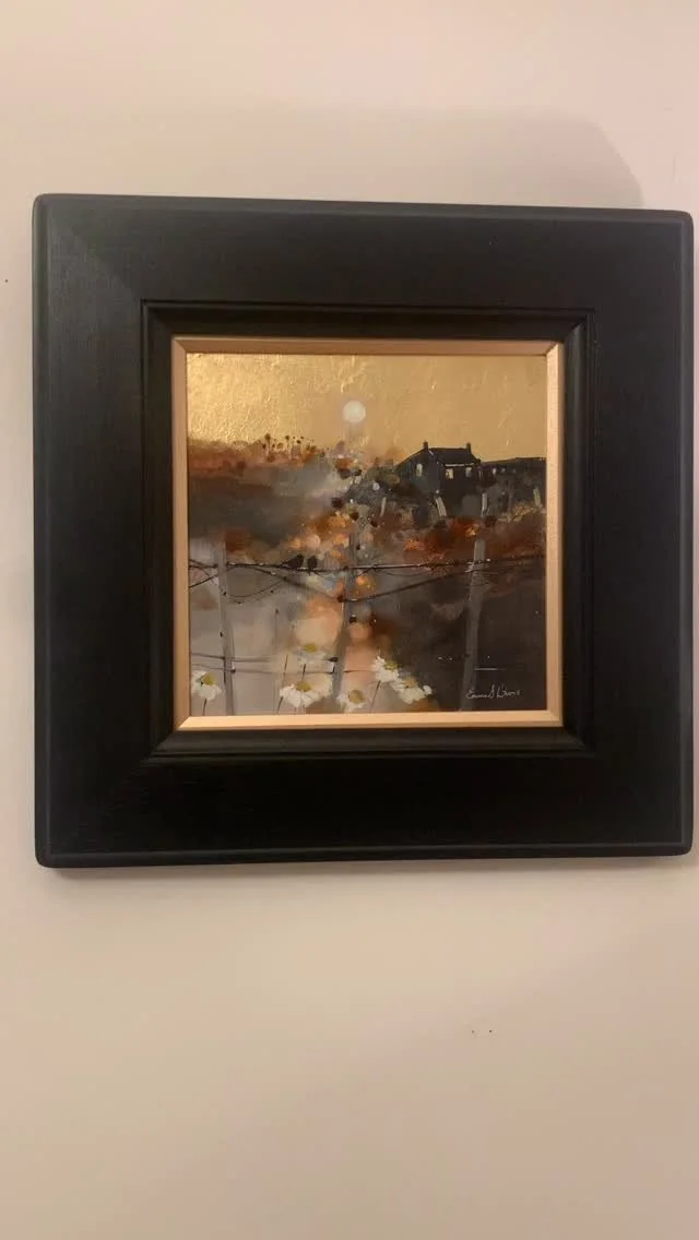 This 8x8” ceramic tile, framed in white woodgrain, is a cheerful reminder of carefree coastal days in the East Neuk of Fife.